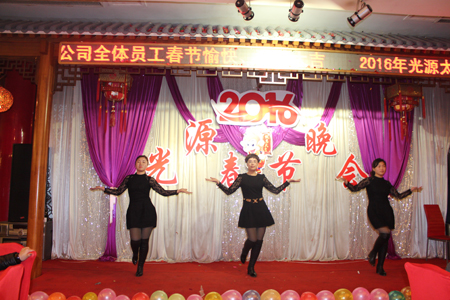 在2016年猴年春節(jié)到來前夕,光源公司于農(nóng)歷臘月二十二(公元2016年1月31日)在邢臺(tái)市天橋莊園多功能廳舉行2016年春節(jié)聯(lián)歡晚會(huì),大家歡聚一堂,載歌載舞,共迎新春。