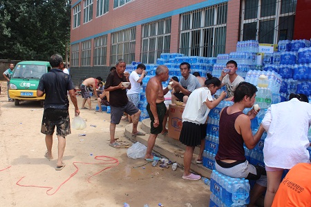 邢臺經(jīng)濟開發(fā)區(qū)東汪鎮(zhèn)景家屯村,是邢臺7.19洪水侵襲的重點村之一。從7月19日晚斷電斷水至今,水電供應(yīng)因施工難度大,至今仍未恢復(fù)。村民一日三餐,僅以礦泉水、方便面(干吃)充饑。