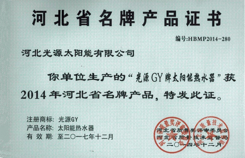 太陽(yáng)能熱利用產(chǎn)品金太陽(yáng)認(rèn)證證書(shū)