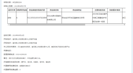 喜報(bào)頻傳,河北光源太陽能科技有限公司,在2019年09月16日,2019年王官莊鎮(zhèn)氣代煤工程壁掛爐采購及安裝項(xiàng)目的競(jìng)標(biāo)中,憑借過硬的產(chǎn)品質(zhì)量,扎實(shí)高效的工作作風(fēng),卓越的運(yùn)作團(tuán)隊(duì)和良好的企業(yè)信譽(yù),以絕對(duì)的優(yōu)勢(shì)順利中標(biāo)。