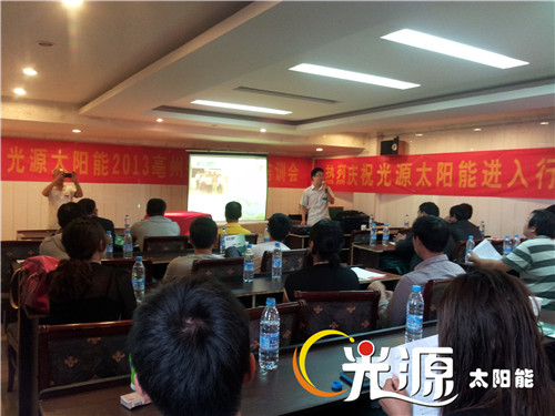 9月12日,光源太陽能安徽亳州招商會成功舉行。會場擺放了光源樣機,整潔美觀的外形,結實耐用的支架及合理的產(chǎn)品設計,得到與會經(jīng)銷商的贊揚。