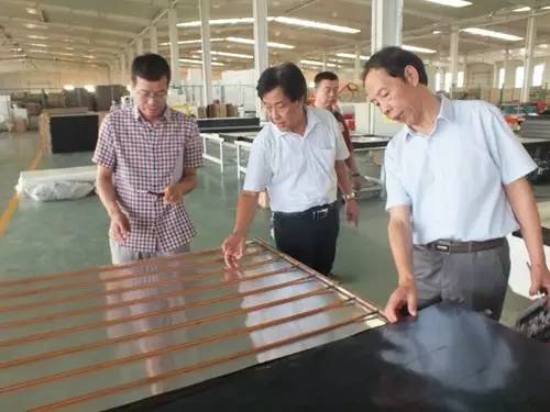 在參觀完太陽(yáng)能真空集熱管制造車間后又到了太陽(yáng)能工程設(shè)備總裝車間,先后參觀了全自動(dòng)下料開(kāi)平設(shè)備、轉(zhuǎn)塔式全自動(dòng)數(shù)控沖床生產(chǎn)線、全自動(dòng)外皮雙頭縮口滾花機(jī)、臥式反向積放發(fā)泡生產(chǎn)線、環(huán)戊烷聚氨酯高壓發(fā)泡機(jī)、全自動(dòng)數(shù)控打包生產(chǎn)線以及壁掛太陽(yáng)能生產(chǎn)線等等。