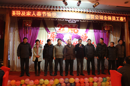 晚會(huì)開始前,董事長李成彬首先致辭。在致辭中,李成彬向全體員工恭賀新春,對(duì)2015年工作進(jìn)行了回顧,對(duì)2016年工作進(jìn)行了展望和描繪。接著,公司領(lǐng)導(dǎo)李成彬、劉迎波、邵東坤、李友民一起上臺(tái)向大家拜年。公司各部門經(jīng)理一起上臺(tái)給大家拜年。恭祝大家新年快樂,猴年大吉,闔家歡樂,萬事如意。