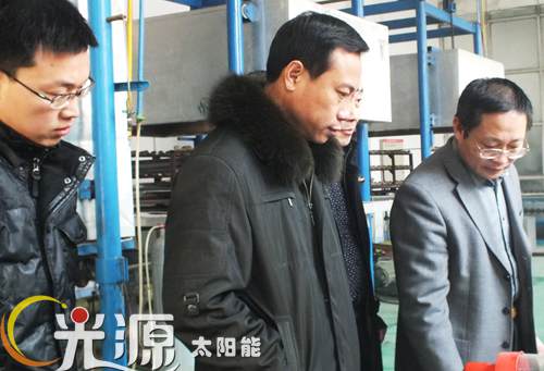 祁主任一行饒有興致地參觀了太陽能熱水器生產(chǎn)流水線,并就校企合作、定向培養(yǎng)、學(xué)生實習(xí)與就業(yè)等與總經(jīng)理劉迎波進行了座談與交流。