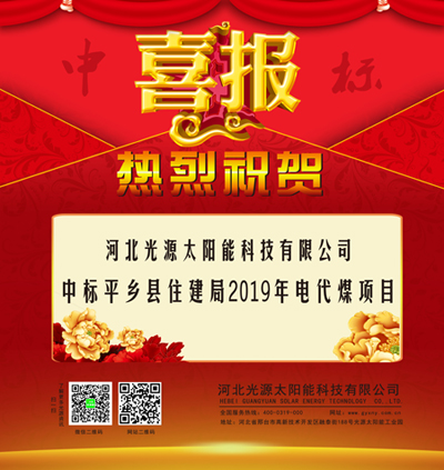 一份耕耘,一份收獲,有志者事竟成。入七月份來,我公司捷報(bào)頻傳, 熱烈祝賀我公司(河北光源太陽能科技有限公司)7月26日平鄉(xiāng)縣電代煤項(xiàng)目成功中標(biāo)。本次中標(biāo)再一次認(rèn)可了我公司的產(chǎn)品質(zhì)量,驗(yàn)證了我公司的實(shí)力。